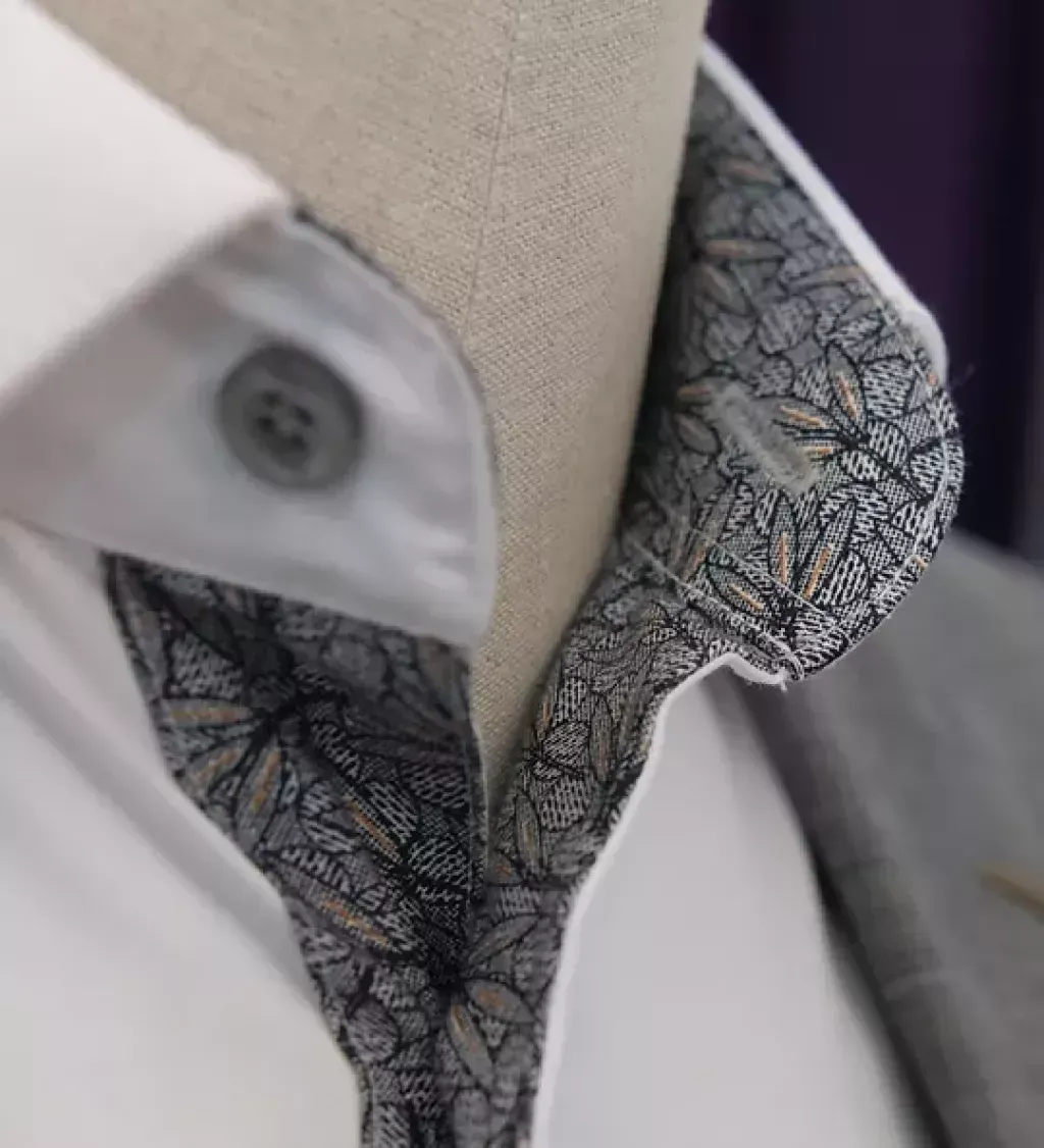 Once you’ve decided on your main cloth, take a step further by adding a contrasting or subtle trim to the shirt. Selecting from the many checks, stripes, floral patterns, paisleys and prints available at Harris & Howard makes for a delightful part of creating your bespoke shirt. Add a contemporary twist to your classic crisp white shirt with an elegant floral trim or, elevate your casualwear with a bold check shirt paired with a bright coloured trim on the underside of the collar and cuff. With a vast range of trim fabrics to choose from and the option to add the contrasting fabric virtually anywhere on your shirt, the creativity you can have with your main cloth and trim is endless and a great way to make your shirt truly personal to you.